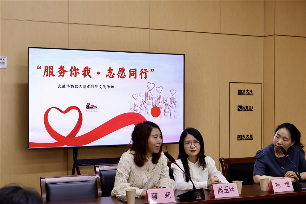 参观结束后,志愿者们齐聚一堂,在会议室参加了志愿交流分享会。武进博物馆公共服务部副主任孙斌为大家介绍了“武博红”志愿者团队的组织架构和发展现状。